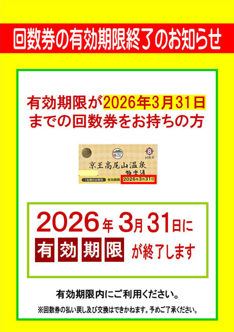 回数券の有効期限終了のお知らせ