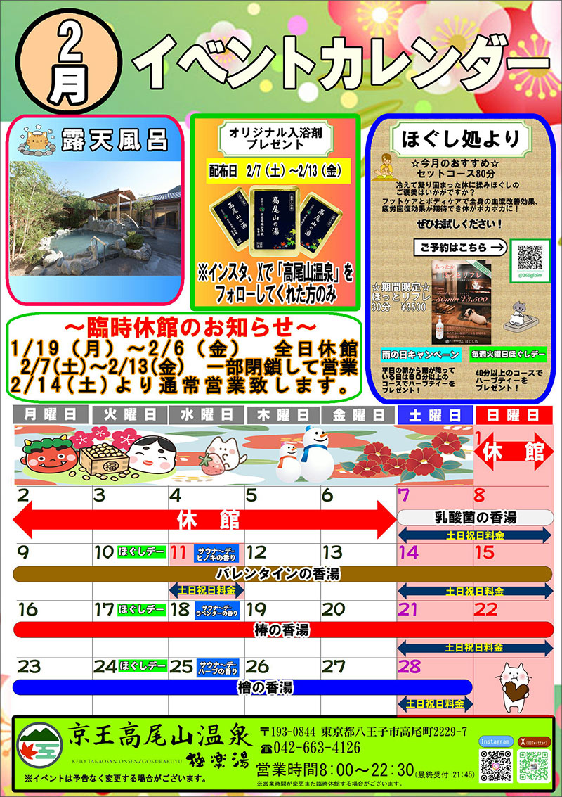 2月のイベントカレンダーをお知らせいたします。